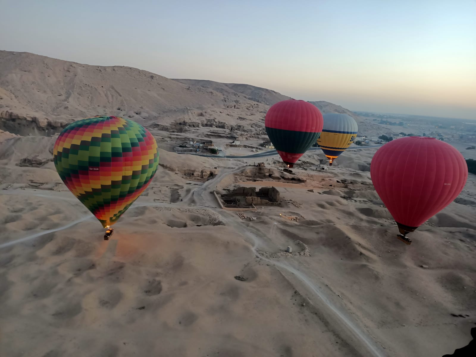 Während Ihrer Fahrt mit dem Ballon werden Sie das Tal der Könige, den Hatschepsut-Tempel, die Memnon-Kolosse, die Arbeiter-Siedlung und deren Gräber sowie den Habu-Tempel (Ramses III) und das Tal der Königinnen sehen.
