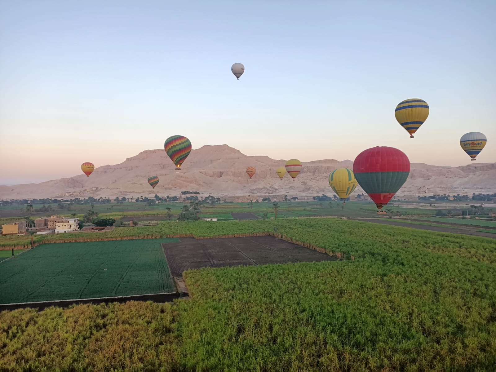 Bereits um ca 04:15 Uhr, es kann auch etwas früher oder später sein, werden Sie von Ihrem Hotel in Luxor abgeholt. Ziel ist der Startplatz Ihrer 45- bis 60-minütigen Heißluftballonfahrt mit Sonnenaufgang und all ihren alten Tempeln und Gräbern.